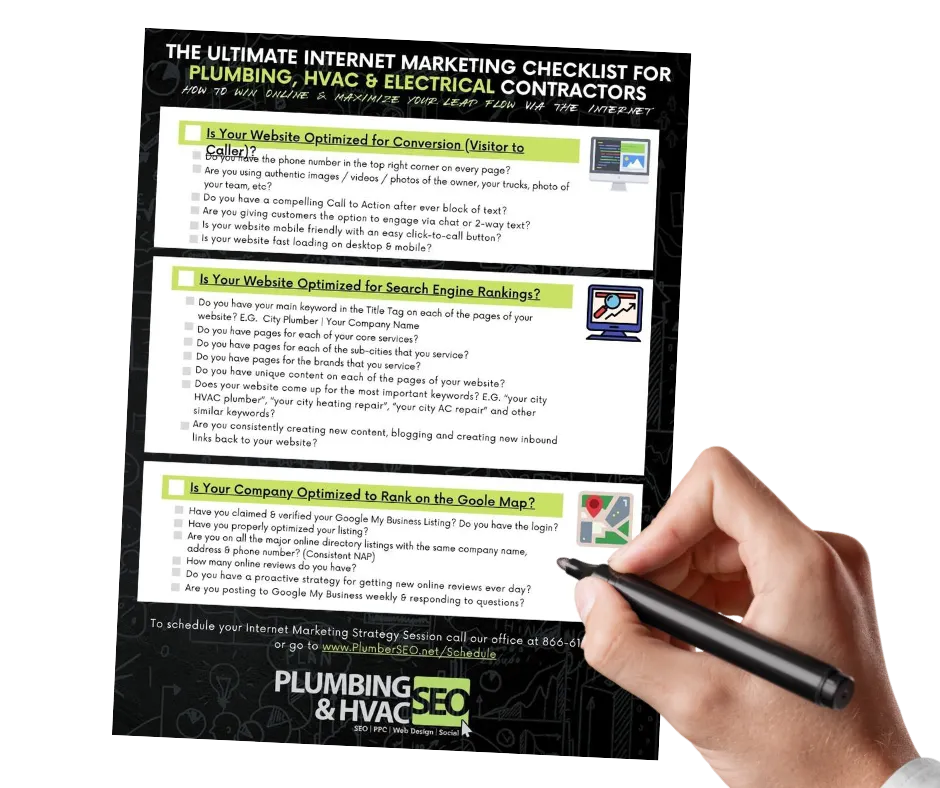 How to get your Internet Marketing Right for your Plumbing or HVAC Business. This checklist will help you identify what is missing from your current strategy and what you must focus on next to take your company to the next level.